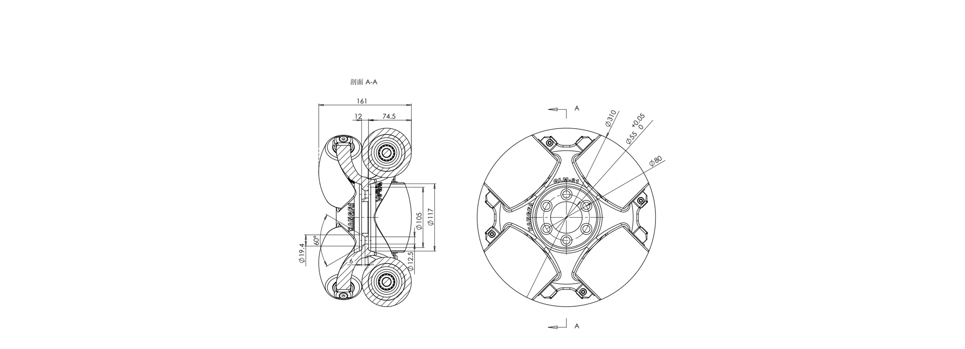 | 典型中心孔 | 55mm |